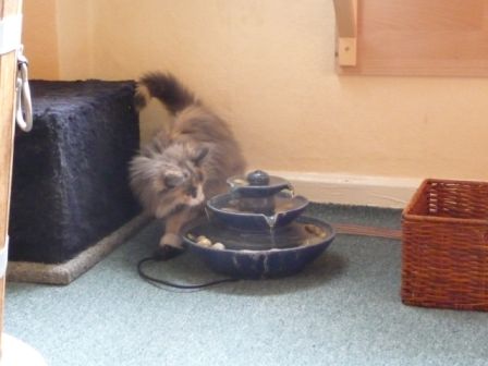 Besonders beliebt sind auch sogenannte Trinkbrunnen. Und das muss kein teurer Katzentrinkbunnen sein. Ganz normale Zimmerbrunnen reichen da auch schon und sehen auch meistens besser aus (Naja, Geschmäcker sind ja bekanntlich verschieden). Fließendes Wasser kann Katzen nämlich zum vermehrten Trinken anregen und so die Nierenfunktion unterstützen aber auch belasten, wenn zu viel Wasser aufgenommen werden muss. (Achtung: auf die Sauberkeit achten! Auch Brunnen müssen gereingt werden.)