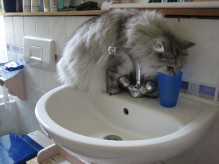 Bei uns wird fast nur noch aus Trinkbrunnen, bzw. aus alten Blumenuntersetzern im Garten getrunken. Normale Wasserschalen sind out. Gerne wird auch die Pfote in eine volle Gieskanne gesteckt und dann genüsslich abgeleckt. Dieser Vorgang kann über mehrere Minuten andauern. Wir hatten auch einmal einen Kater, der unbedingt morgens beim Zähneputzen auf dem Waschbecken sitzen musste, um dann aus dem vollen Zahnputzbecher zu trinken.