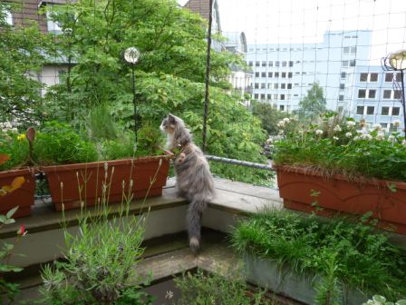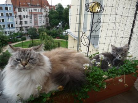Fenster, die ganz geöffnet werden, stellen für Katzen in höheren Stockwerken eine nicht unerhebliche Gefahrenquelle dar. Entweder die Katze rutscht bei einen ungeschickten Sprung auf die Fensterbank weg, z.B. weil es dort vom Blumen begießen noch nass und rutschig ist, oder die Katze hat bei der Jagd nach einer Fliege das Tempo falsch eingeschätzt hat. Oder sie sitzt schon auf der Fensterbank, und beim Balancieren um die Blumentöpfe oder durch einen überraschend nahe vorbei fliegenden Vogel verliert sie das Gleichgewicht. Absturzunfälle vom Balkon oder aus dem Fenster passieren öfter, als viele Katzenfreunde glauben. Und es trifft nicht nur Katzenkinder, also glauben Sie nicht, Ihre Katze sei zu schlau dafür.